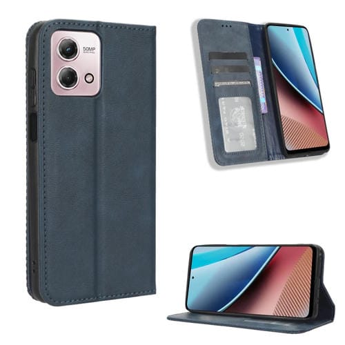 Funda de Cuero para Motorola Moto G Stylus 4G 2023 con Hebilla Magnética y Textura Retro (Azul)