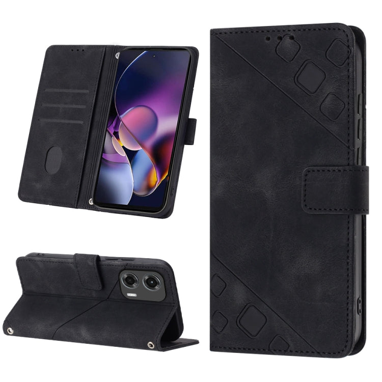 Funda de Cuero para Motorola Moto G Stylus 5G con Relieve y Sensación de Piel (Negro)