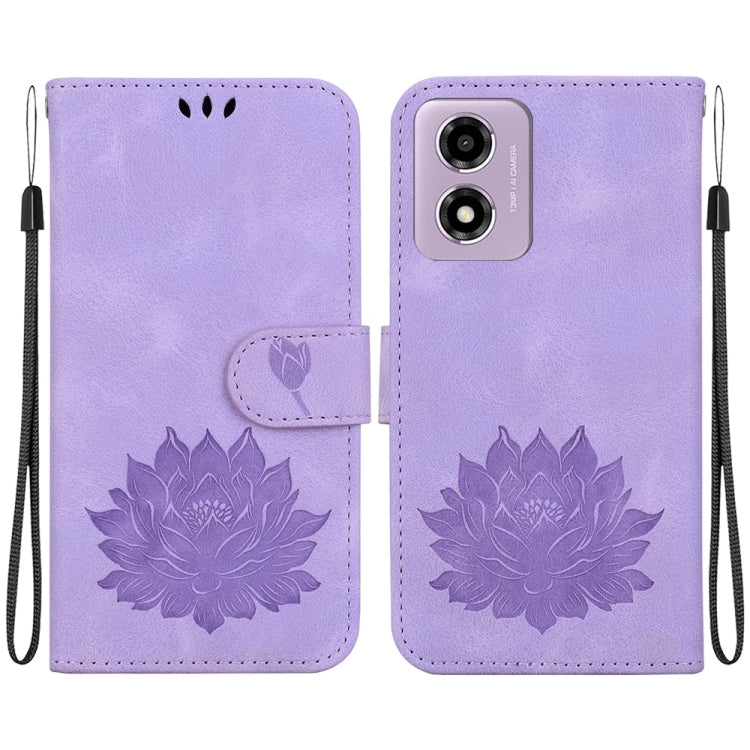 Funda de Cuero con Relieve de Loto para Motorola Moto G04S y Moto E14 (Púrpura)