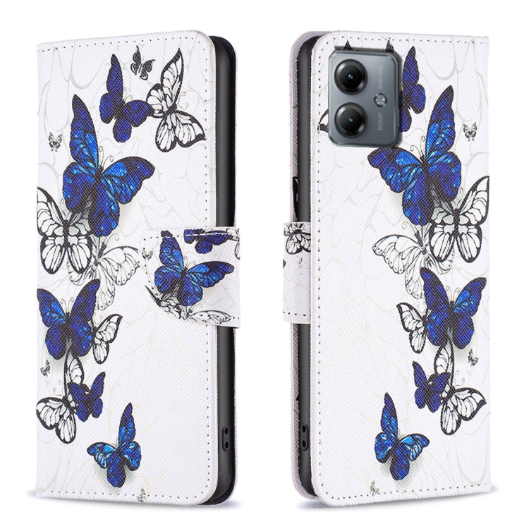 Funda de Cuero para Motorola Moto G14 4G con Patrón de Mariposas Coloreado