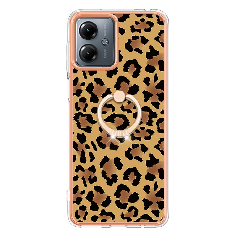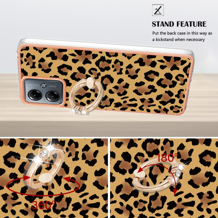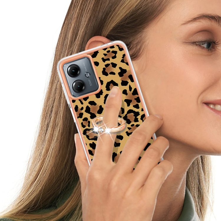 Estuche para Motorola Moto G14 IMD doble cara con galvanoplastia y soporte para anillo (Leopardo)