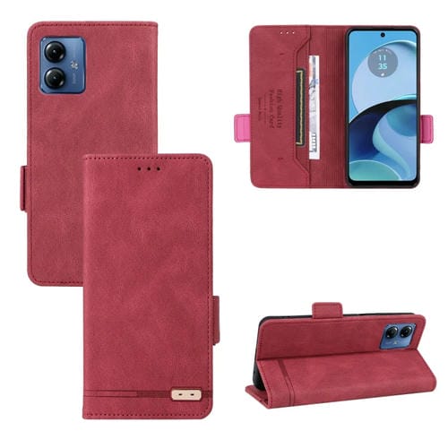 Funda de Cuero para Motorola Moto G14 con Cierre Magnético (Rojo)