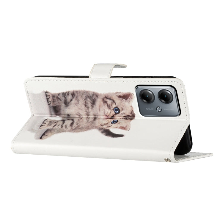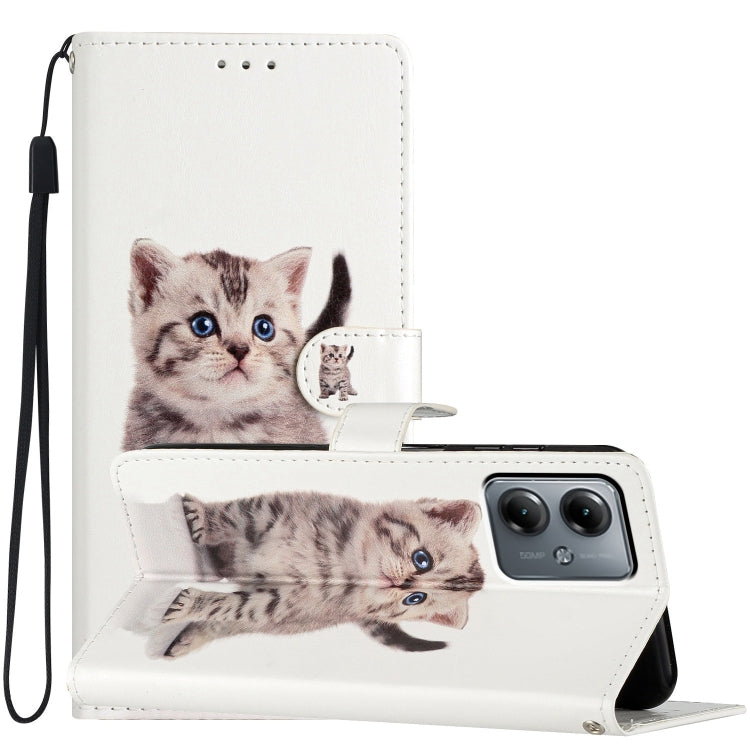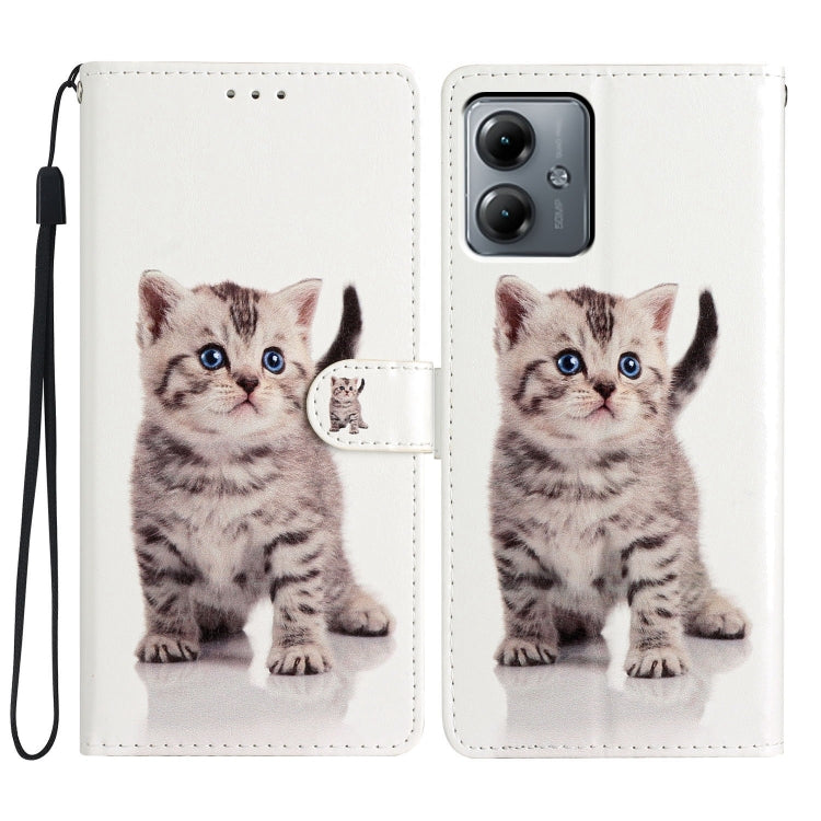 Funda de Cuero para Motorola Moto G14 con Dibujo Coloreado Pequeño Gato Atigrado