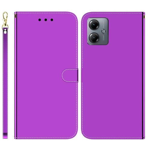 - 1x Funda de Cuero para Motorola Moto G14 con Superficie de Espejo Imitada (Púrpura)