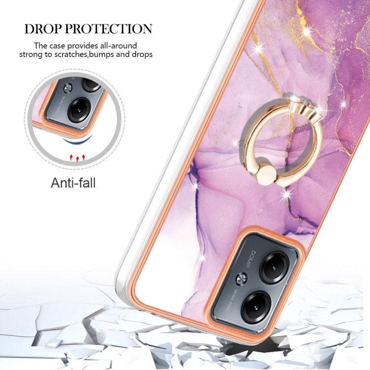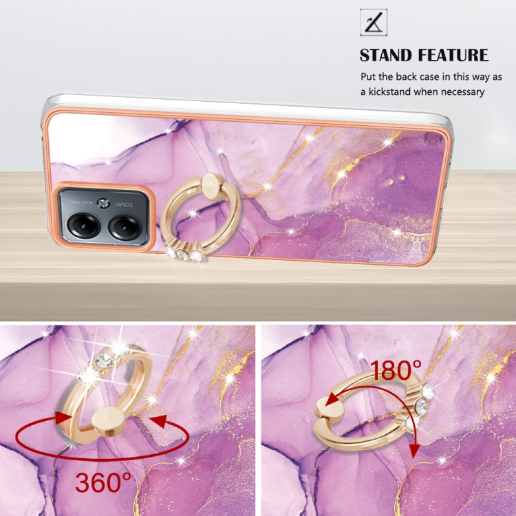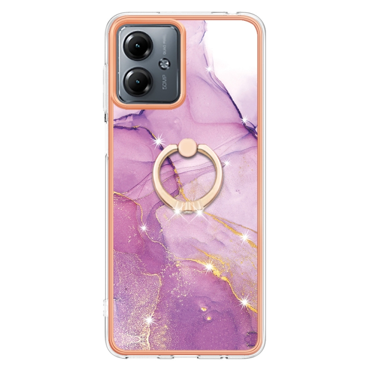 Funda TPU Motorola Moto G14 Galvanoplastia Mármol con Soporte para Anillo (Púrpura)