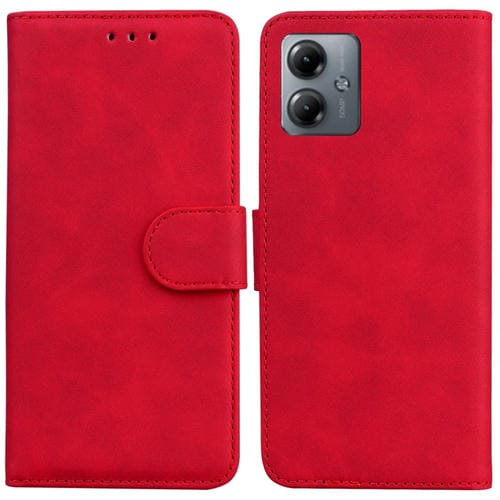 Funda de Cuero con Tapa para Motorola Moto G14 Skin Feel Pure Color (Rojo)