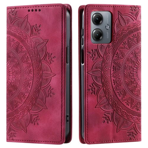 Funda de Cuero Magnética Totem para Motorola Moto G14 en Relieve (Rojo)