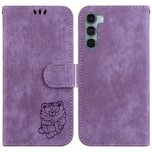 Funda para Motorola Moto G200 5G Edge S30 de Cuero con Relieve Little Tiger (Púrpura)