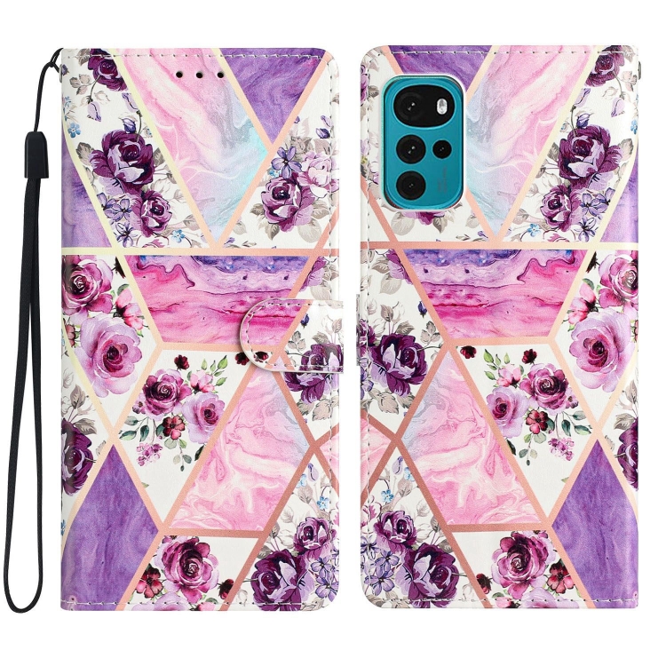 - 1x Estuche para Motorola Moto G22 de cuero con dibujo coloreado (Mármol Púrpura)