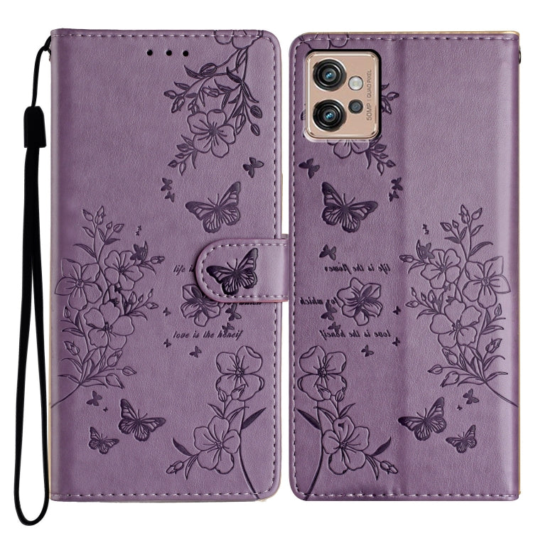Funda de Cuero para Motorola Moto G32 con Mariposas y Flores (Púrpura)