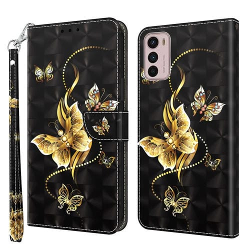 Funda para Motorola Moto G42 5G 3D de Cuero Pintado Mariposa Golondrina Dorada