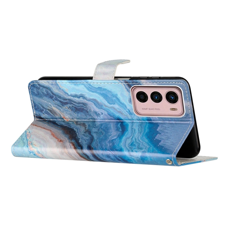 Estuche para Motorola Moto G42 de Cuero con Dibujo Coloreado (Mármol Azul)
