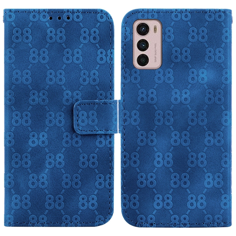 Estuche para Motorola Moto G42 de Cuero en Relieve con Doble Forma de 8 (Azul)