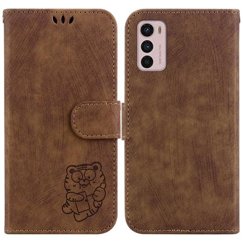 - 1x Funda para Motorola Moto G42 de Cuero con relieve Little Tiger (Marrón)
