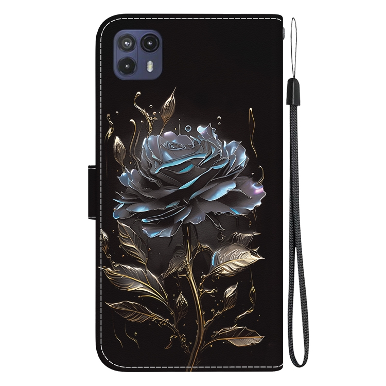 Funda de Cuero para Motorola Moto G50 5G con Dibujo Coloreado y Textura de Cristal (Rosa Negra)