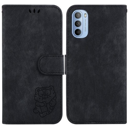 Funda de Cuero para Motorola Moto G51 con Relieve Little Tiger (Negro)