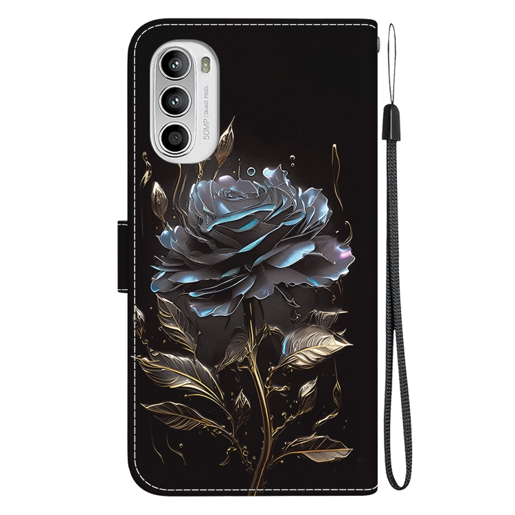 Funda de Cuero para Motorola Moto G52 con Dibujo Coloreado y Textura de Cristal (Rosa Negra)