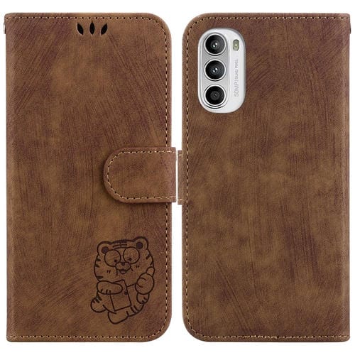 - 1x Funda para Motorola Moto G52 de Cuero con relieve Little Tiger (Marrón)