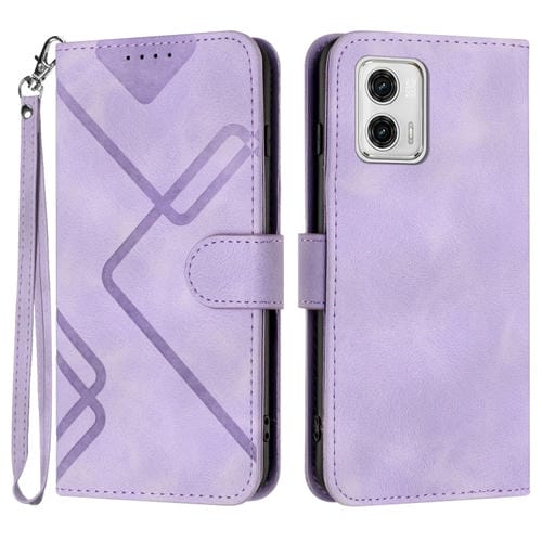 Funda de Cuero para Motorola Moto G53 con Diseño Line Pattern Skin Feel (Púrpura Claro)