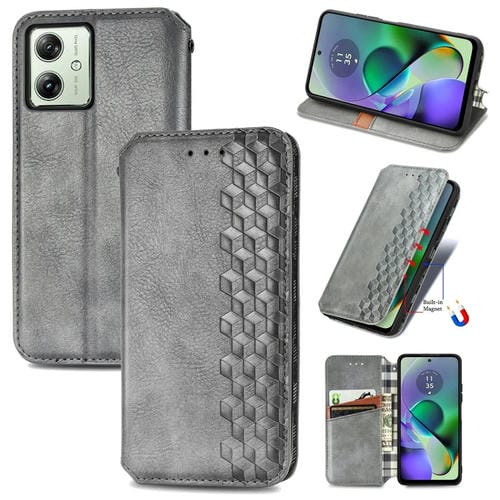 Funda de Cuero Magnético Prensado para Motorola Moto G54 5G Cubic Grid (Gris)