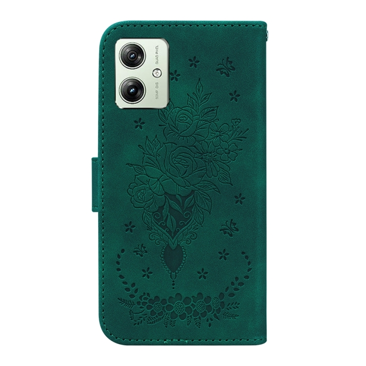 Funda de Cuero Motorola Moto G54 Butterfly Rose para Teléfono en Relieve (Verde)