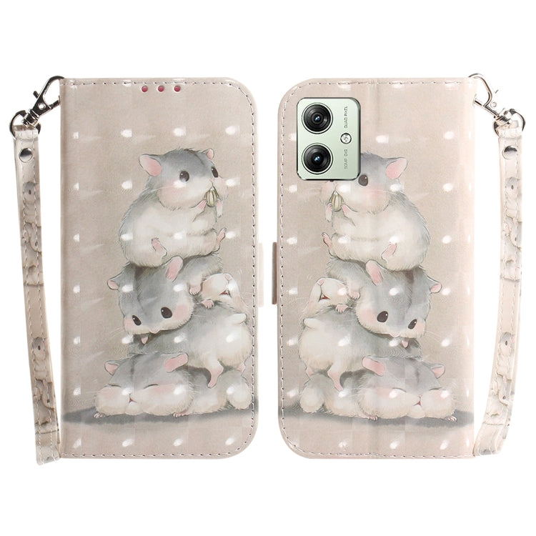 Funda de Cuero para Motorola Moto G54 con Tapa Horizontal y Diseño 3D (Ardillas)