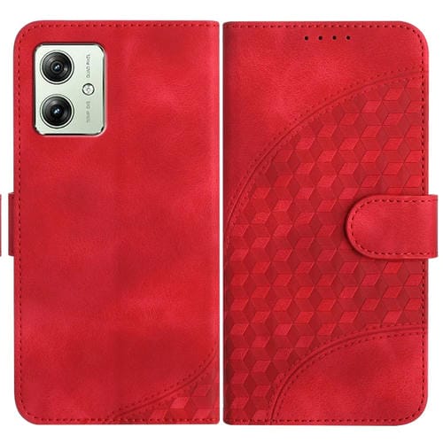 Funda de Cuero para Motorola Moto G54 Global Yx0060 con Relieve y Cabeza de Elefante con Cordón (Rojo)