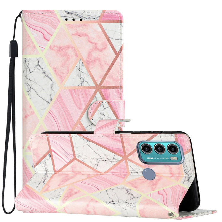 - 1x Estuche para Motorola Moto G60 de cuero con dibujo coloreado Mármol Rosa