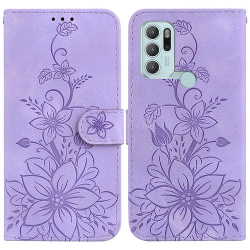 Funda de Cuero en Relieve para Motorola Moto G60S Lily (Púrpura)