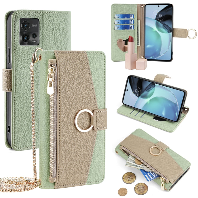Funda de Cuero Crossbody para Motorola Moto G72 4G con Textura Litchi (Verde)