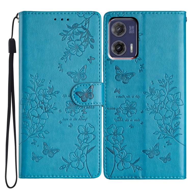 Funda de Cuero para Motorola Moto G73 con Mariposas y Flores (Azul)