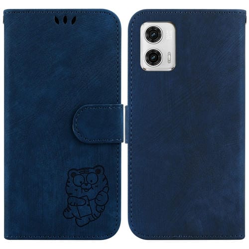 - 1x Funda para Motorola Moto G73 de Cuero con relieve Little Tiger (Azul Oscuro)