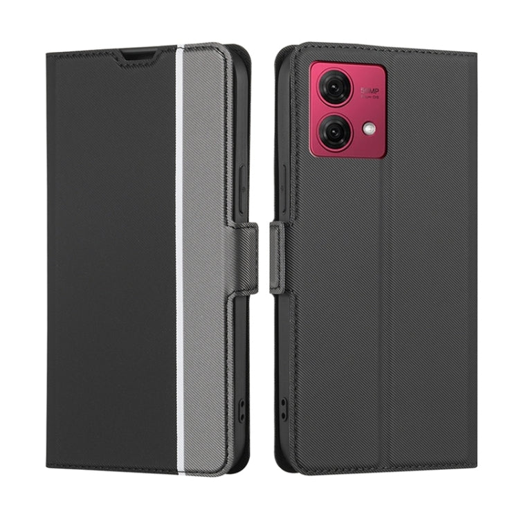 Funda de Cuero para Motorola Moto G84 5G con Botón Lateral y Textura de Sarga (Negro)