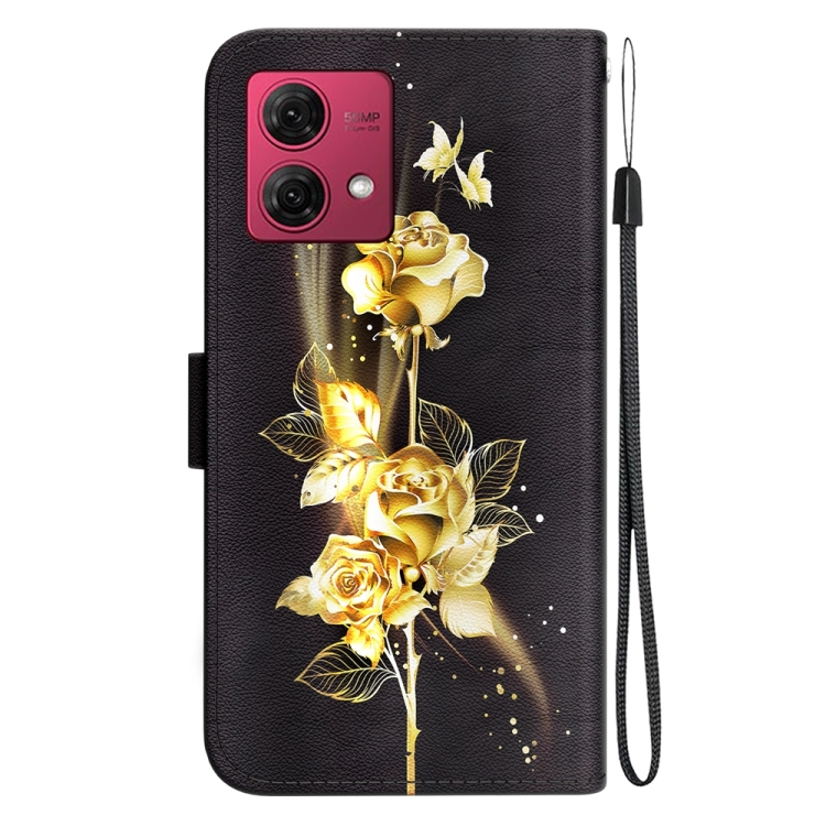 Funda de Cuero para Motorola Moto G84 con Dibujo Coloreado y Textura de Cristal (Mariposa Dorada Rosa)
