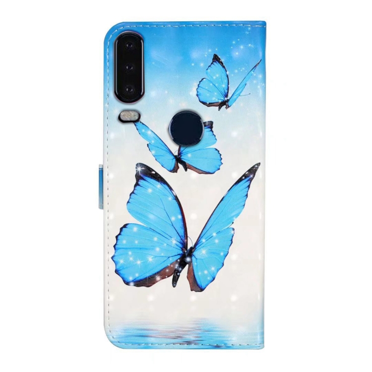 Funda de Cuero para Motorola Moto P40 Power con Dibujo 3D en Relieve (3 Mariposas)