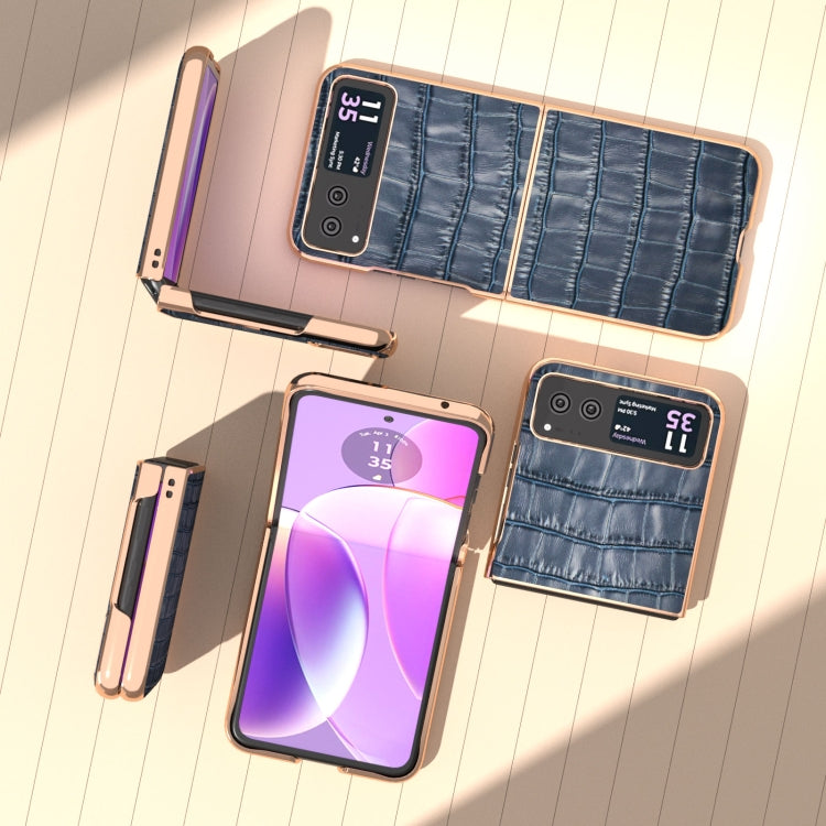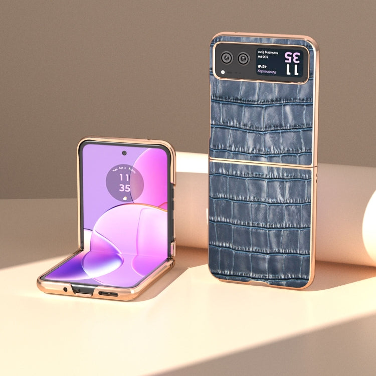 Funda para Motorola Razr 40 con Galvanoplastia de Cuero Genuino y Textura de Cocodrilo (Azul)