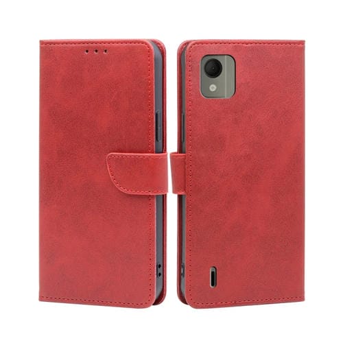 Funda para Teléfono Nokia C110 4G de Cuero con Tapa Hebilla y Textura de Becerro (Rojo)