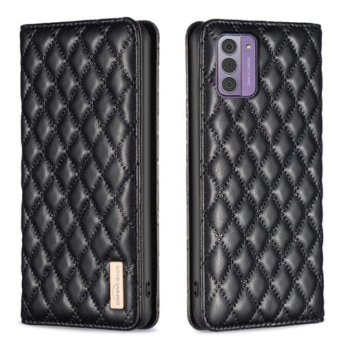 Funda de Teléfono Nokia G42 G310 con Tapa de Cuero Magnético y Entramado de Diamantes (Negro)