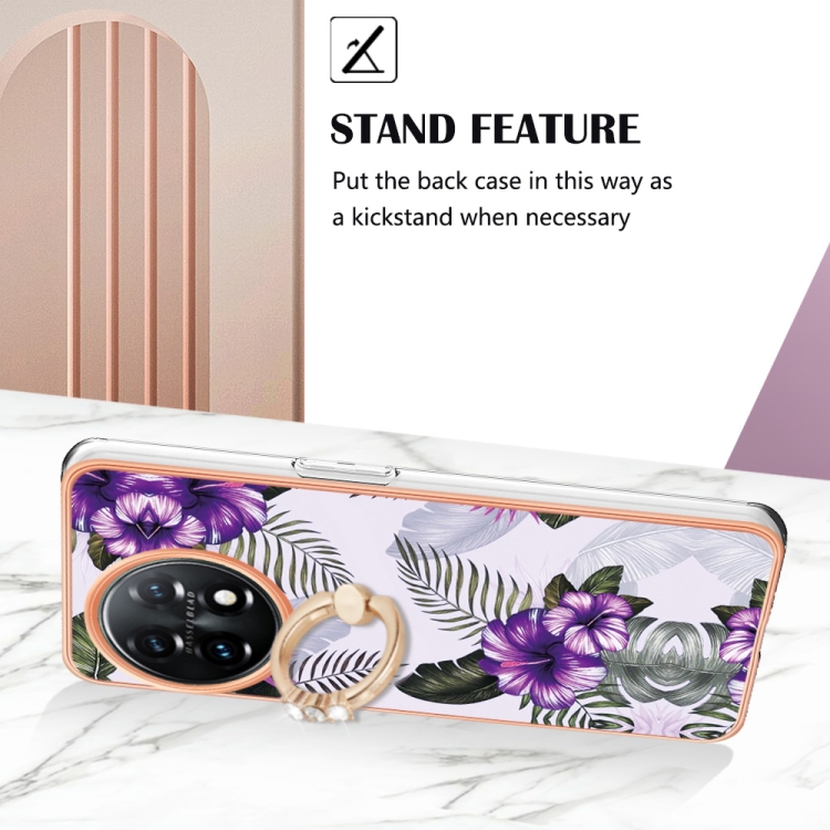 - 1x Funda TPU con Anillo para OnePlus 11 Galvanoplastia IMD (Flor Púrpura)