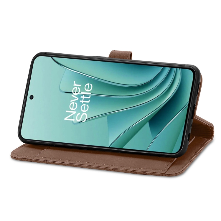 - 1x Estuche para OnePlus Ace 2V de cuero con cremallera y flores en relieve (Marrón)
