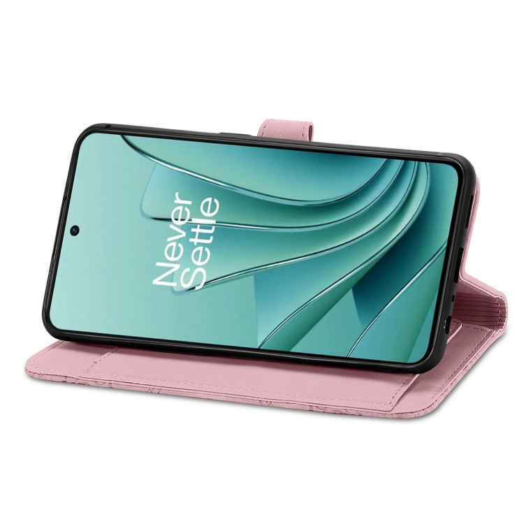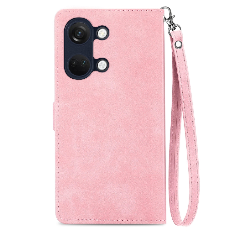 Estuche para OnePlus Ace 2V de Cuero con Cremallera y Flores en Relieve (Rosa)