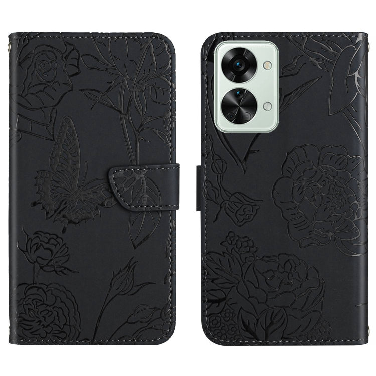 - 1x Skin para OnePlus Nord 2T 5G Butterfly Peony Foothip Fase (Negro)