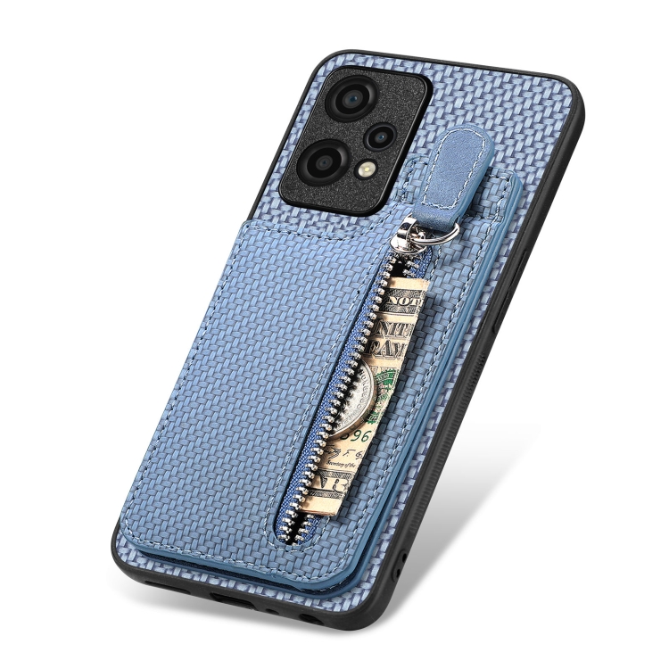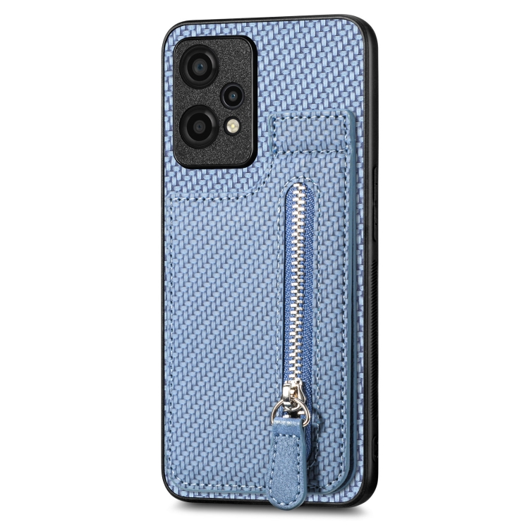 Funda para OnePlus Nord Ce 2 Lite con Cremallera Vertical de Fibra de Carbono (Azul)