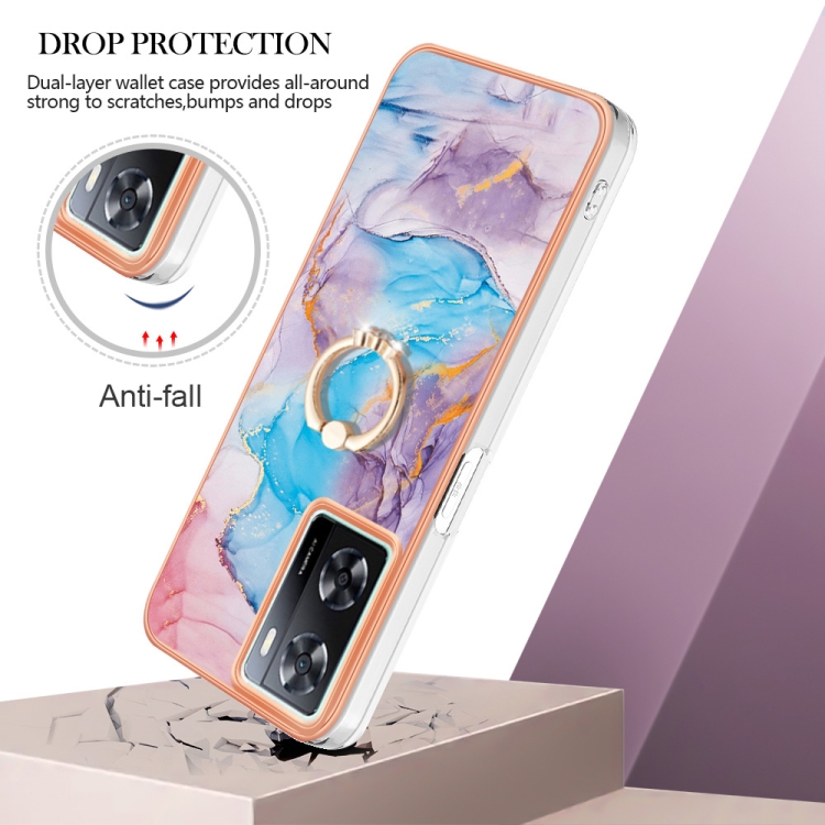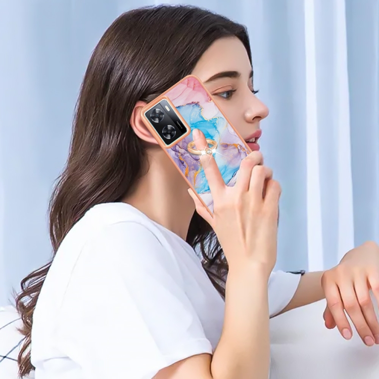 Funda TPU con Anillo para OnePlus Nord N300 Galvanoplastia Imd (Mármol Azul)