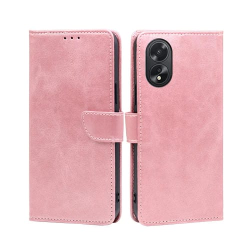 Para Oppo A38 4G / A18 4G Funda para Teléfono de Cuero con Tapa con Hebilla y Textura de Becerro (Oro Rosa)