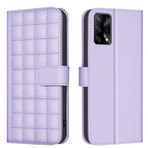 Para Oppo A74 4G / F19 4G Funda de Cuero para Teléfono con Textura Cuadrada (Púrpura)