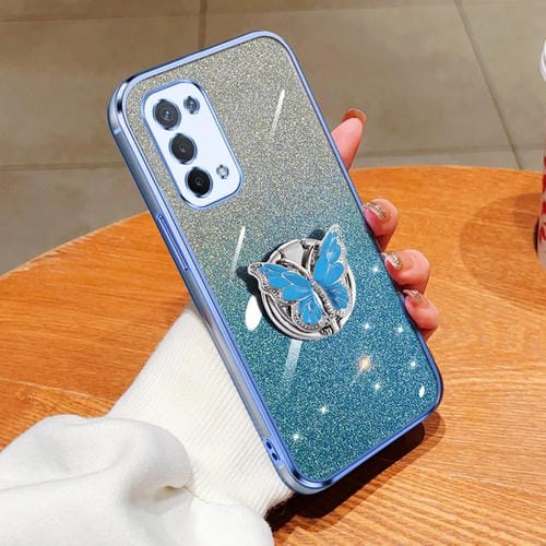 Para Oppo A74 5G Funda para Teléfono de TPU con Soporte de Mariposa con Brillo Degradado Plateado (Azul Sierra)