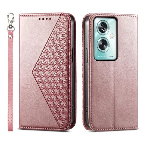 Para Oppo A79 5G Cubic Grid Calf Texture Funda de Teléfono de Cuero Magnético (Oro Rosa)