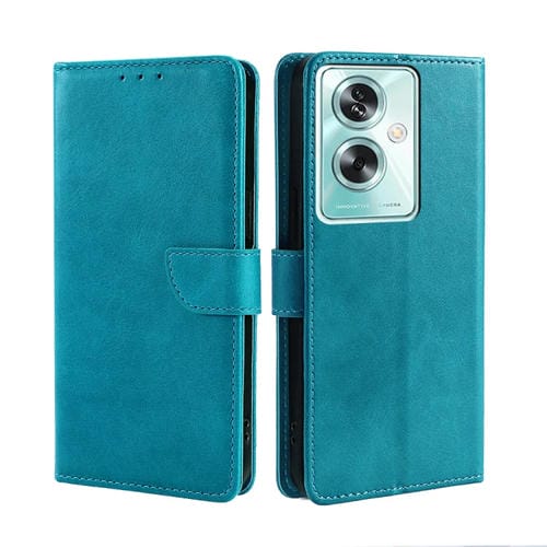 Para Oppo A79 5G Funda para Teléfono de Cuero con Tapa con Hebilla y Textura de Becerro (Azul Claro)
