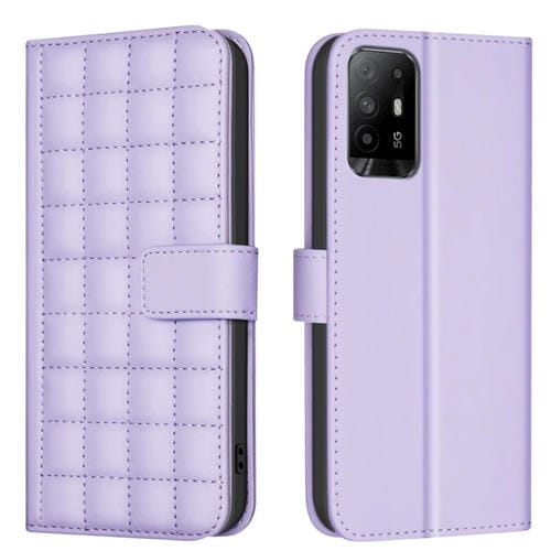 Para Oppo A94 5G / Reno5 Z / F19 Pro+ Funda de Cuero para Teléfono con Textura Cuadrada (Púrpura)